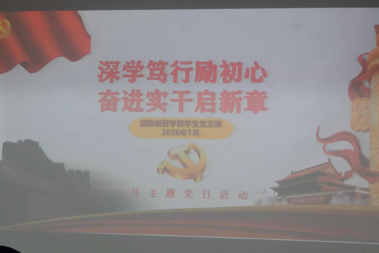 为深入学习贯彻习近平新时代中国特色社会主义思想,筑牢学生党员思想根基,激发实干创新精神,国际商贸学院学生党支部于2026年1月15日下午在学校AB栋党员之家组织举办一月主题党日活动。活动以“深学笃行砺初心,奋进实干启新程”为主题,由支部副书记郑浩男老师主持,全体党员及15名入党积极分子共同参加。