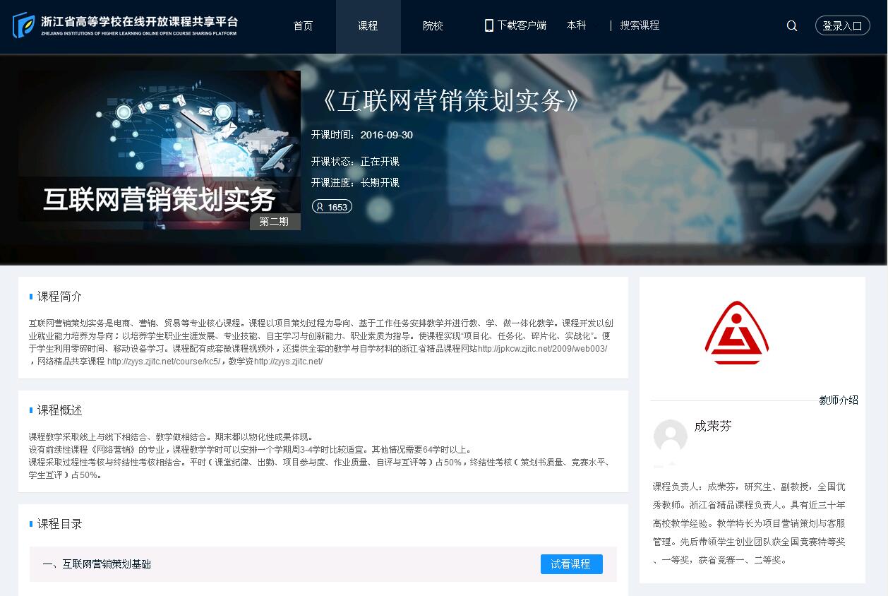 我院成荣芬老师主持的《互联网营销策划实务》入选首批国家精品在线开放课程