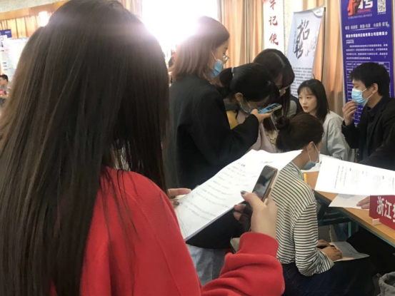 本次跨境电商专场招聘会是疫情以来国际商贸分院举办的最大规模线下招聘会,分院制定了详尽的工作方案,严格按照疫情防控要求,对参会人员进行体温检测及健康码审查,对求职学生实行分批错时入场,确保活动安全有序进行。