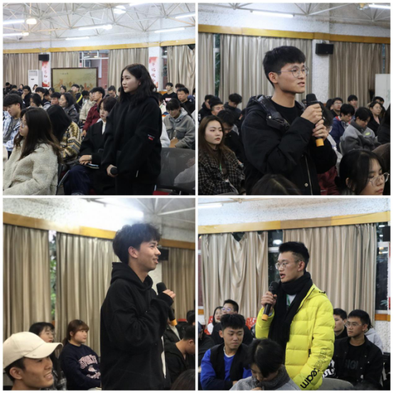 四位优秀校友分享了自己的就业与创业经历后,校友与现场学生进行互动,现场的商贸学子对于“丰富自己的经验更重要还是努力更重要”、“创业需要怎样的契机”、“如何一直保持上进,成为更优秀的人”等问题进行了提问。各位学长也就大家提出来的问题进行了详细的解答,并讲述自己了的理解。