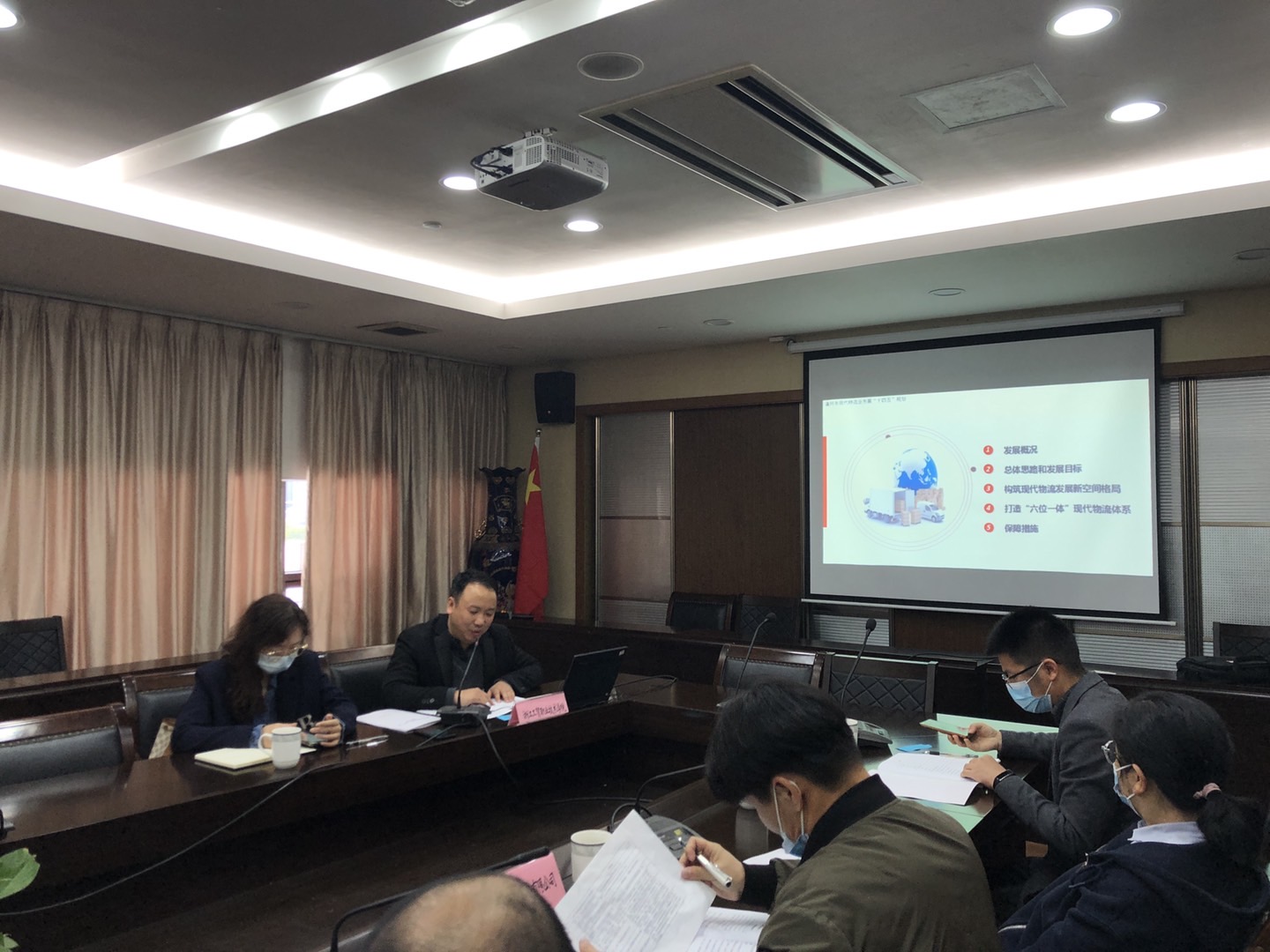 3 月 12 日,温州市现代物流业“十四五”规划意见征求会在温州市行政管理中心一号楼 5 楼会议室举行。温州市发改委、市交通运输局、市商务局、市邮政管理局、国家综合物流信息平台、温州机场集团、温州港集团、浙江金温铁路开发有限公司、市现代集团、交运集团、浙江工贸职业技术学院、浙江东方职业技术学院等单位相关处室负责人以及多名温州市政协委员、浙江泰易达、温州益活物流等物流企业代表参加,会议由温州市发改委现代服务业处处长潘驰主持。浙江工贸职业技术学院温州现代物流学院副院长陈碎雷汇报了温州市现代物流业发展“十四五”规划编制工作。陈碎雷老师从发展概况、总体思路和发展目标、构筑现代物流发展空间格局、打造“六位一体”现代物流体系、保障措施等五个方面进行了重点汇报。