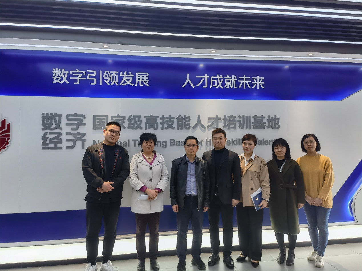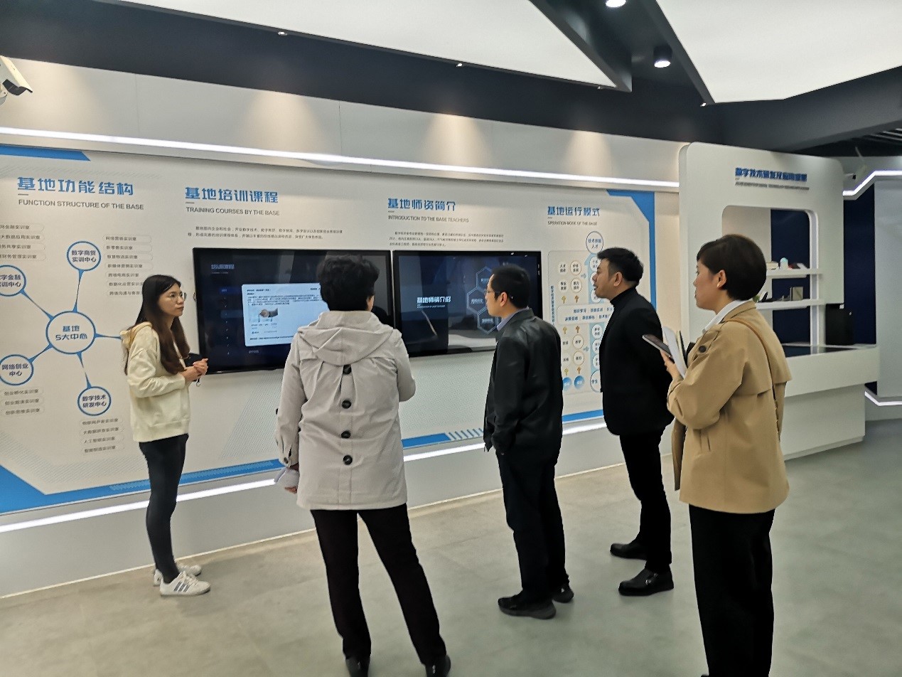 随后,国际商贸学院院长成荣芬带领参观了学院的“数字经济国家级高技能人才培训基地”及直播基地,并介绍了基地项目成果。双方就深化实习基地项目对接、涉外志愿者服务队和外贸人才的培养等合作事项进行交流探讨。