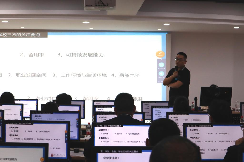 接着,人本股份有限公司分享了与我院的校企合作经验,从企业情况、合作背景、合作模式、关注的核心内容四个模块进行讲解,提供了校企合作的宝贵经验,同时代表合作企业希望此次校企合作能为学生们带来更多的实习岗位和更好的发展空间。
