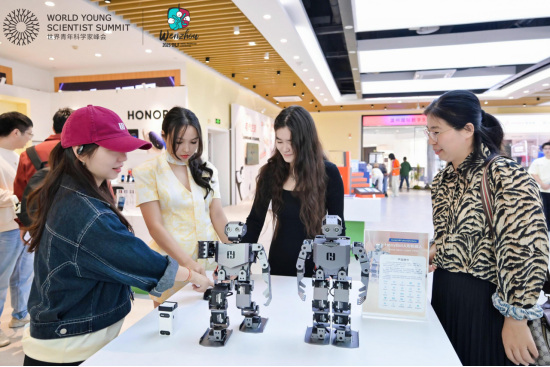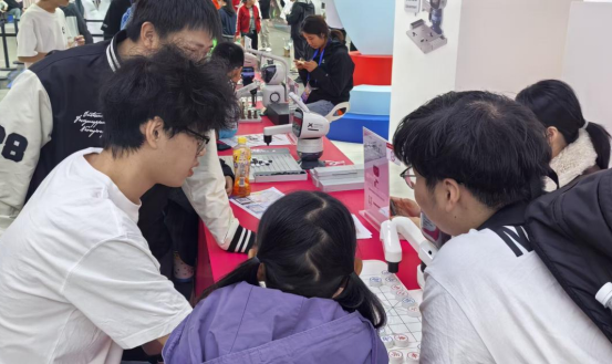 在人工智能潮品区,仿生机器人、AI围棋等黑科技产品让学生们叹为观止,亲身体验了人机交互的无限可能;在前沿科技艺术展区,智能机器人、机器狗与赛博朋克风格的装置艺术完美融合,激发了同学们对科技与艺术跨界应用的无限遐想。