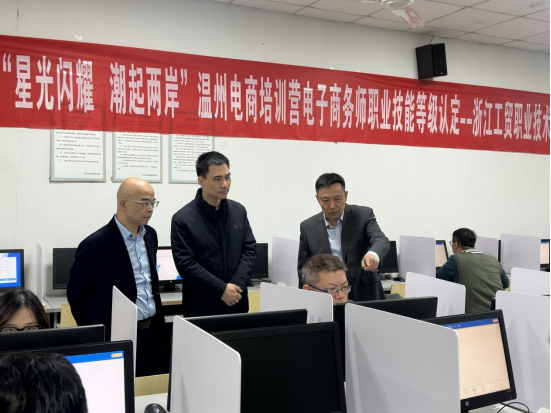 为深入践行“两岸一家亲”理念,深化“三融”两岸交流路径,2025年12月1日,由国台办经科中心主办,浙江工贸职业技术学院与温州市台办共同承办的首期台湾青年电子商务师职业技能等级认定考试在浙江工贸职业技术学院顺利落幕。