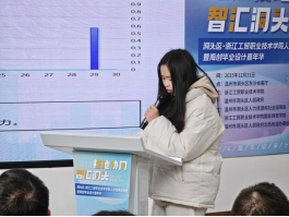 在优秀毕业设计作品分享环节,来自电子商务、物流管理、商务数据分析等专业的六组学生依次进行路演汇报,作品涵盖“温州非遗贝雕文化知识科普类短视频设计”“上上渔黄鱼系列营销海报视觉设计”“浙里寻保短视频制作与运营策划”“杨梅供应链数智化转型实践方案”“亚马逊平台跨境电商男鞋市场分析”等紧扣地方产业与电商前沿的课题。