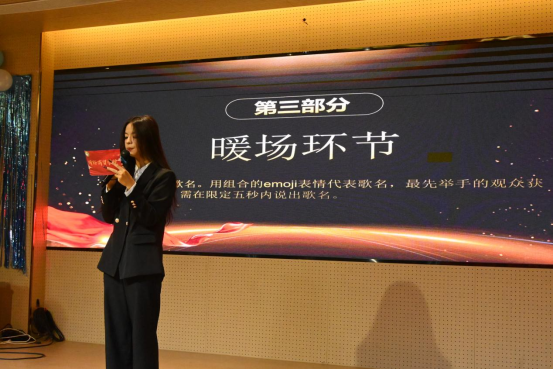 中场游戏《emoji猜歌》趣味开启,10个emoji表情对应10首歌曲,观众踊跃举手抢答,在限定5秒内说出正确歌名者即可获得小礼品,将现场氛围推向高潮。