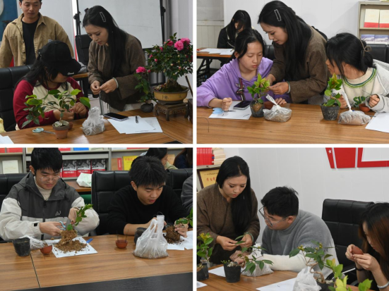 此次茶花盆景制作活动,是非遗系列主题活动的重要组成部分,更是校园文化节的特色亮点。它以生动有趣的实践形式搭建起非遗传承与校园文化的沟通桥梁。既让同学们近距离接触了温州盆景技艺这一非物质文化遗产,更在实践中深化了对中华优秀传统文化的认同与热爱。未来国际商贸学院将继续举办此类活动,致力于非遗文化的传播与推广,让更多人感受非遗艺术的独特魅力,让“瓯越遗珠”在代代相传中焕发新的生机。