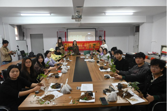 为传承与弘扬温州本土非遗文化,让青年学子在亲身实践中感受传统技艺的魅力,2025年12月17日下午,国际商贸学院于AB栋党员之家开展了2025年度校园文化节“青春UP”课堂系列活动“瓯越遗珠非常好玩”。活动特邀温州市盆景技艺非遗传承人邱似梦老师担任主讲,15位学生代表共同参与,在茶花盆景制作体验中领略匠心美学,体悟文化传承,同时也为校园文化节增添了一抹浓郁的传统韵味。