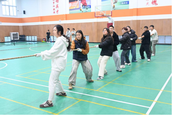 为丰富学生课余文化生活,增强集体凝聚力和团队协作精神,国际商贸学院于3月21日在室内体育馆举办了“青春无畏聚力同心”拔河比赛。本次比赛吸引了来自全院各年级的11支队伍踊跃报名,其中2025级新生队伍共有7支,充分展现了同学们参与集体活动的高涨热情。赛场上,大家心往一处想、劲往一处使,奋力拼搏,为荣誉而战,充分展现了商贸学子团结向上、勇于争先的精神风貌。