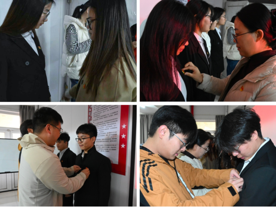 宣誓完毕后,与会教师党员为预备党员逐一佩戴党员徽章。党员徽章佩戴于胸前,不仅意味着政治身份的正式确认,更象征着一份沉甸甸的责任与崇高的使命。