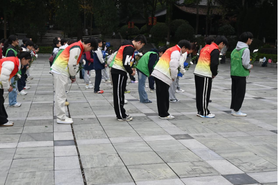 上午,参与师生手持白菊,肃立于烈士纪念碑前。活动在庄严的国歌声中拉开序幕,激昂的旋律凝聚着对祖国的忠诚与对先烈的崇高敬意。国歌奏毕,全体人员垂首默哀,深切悼念南京大屠杀死难同胞以及为民族独立与人民解放事业英勇献身的革命先烈。默哀结束后,学生代表向烈士纪念碑敬献花圈,全体人员依次上前,轻轻将手中的白菊摆放在纪念碑前,以朴素而诚挚的方式表达深切哀思。