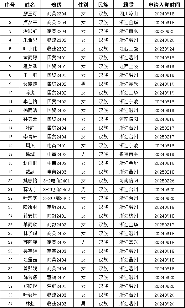 2025年秋季学期拟将廖玉可等34位同志列为入党积极分子的公示